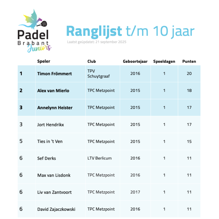 Padel Brabant Juniors Tour