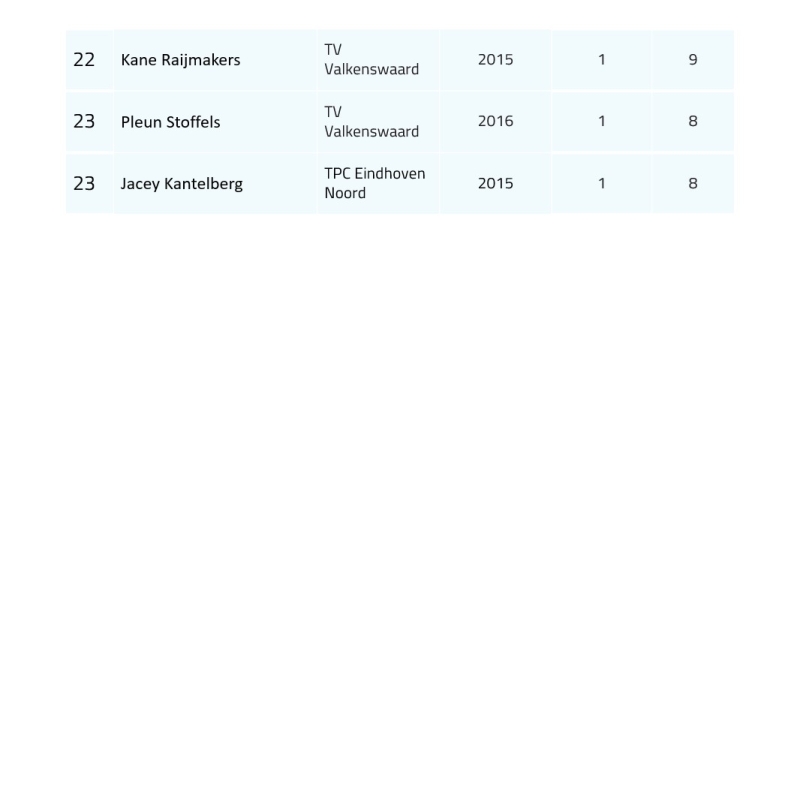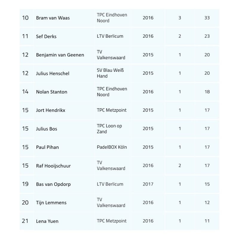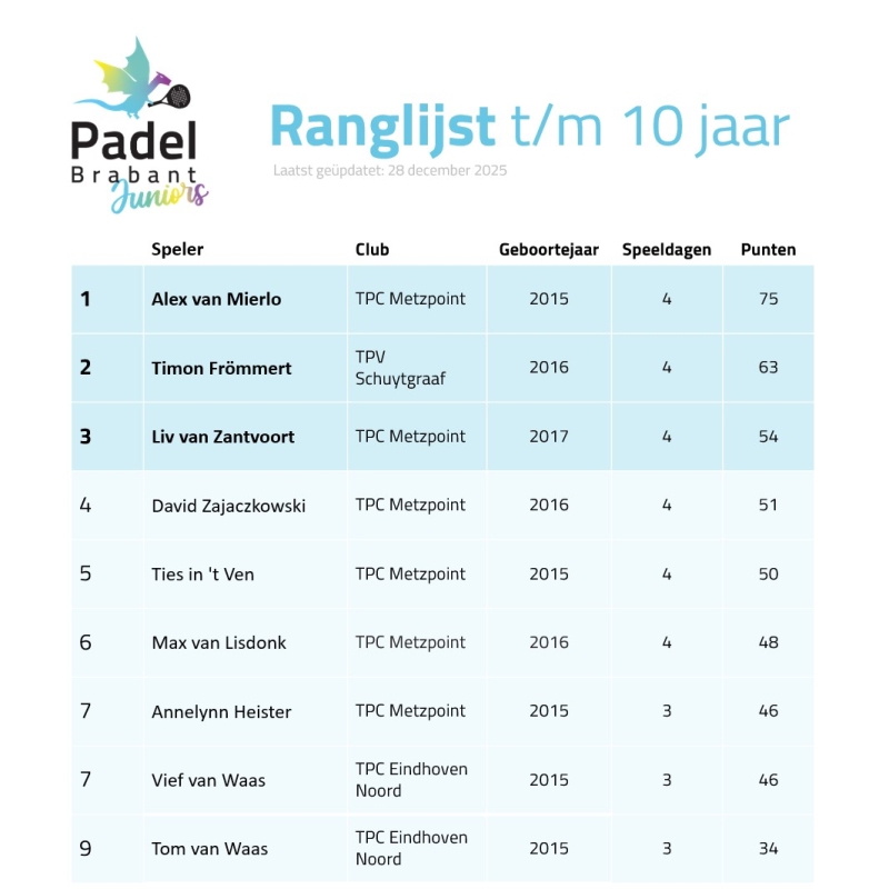 Ranglijst t/m 10