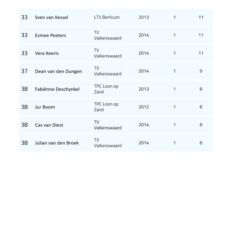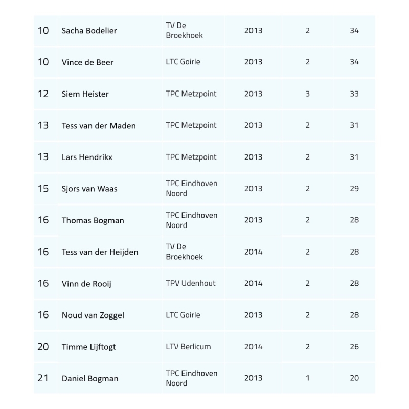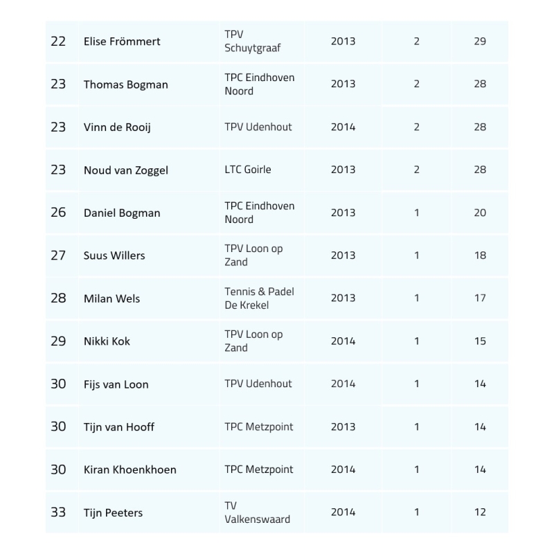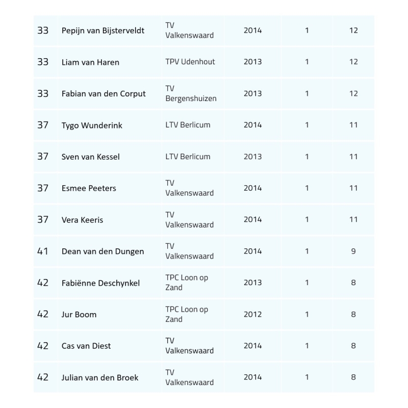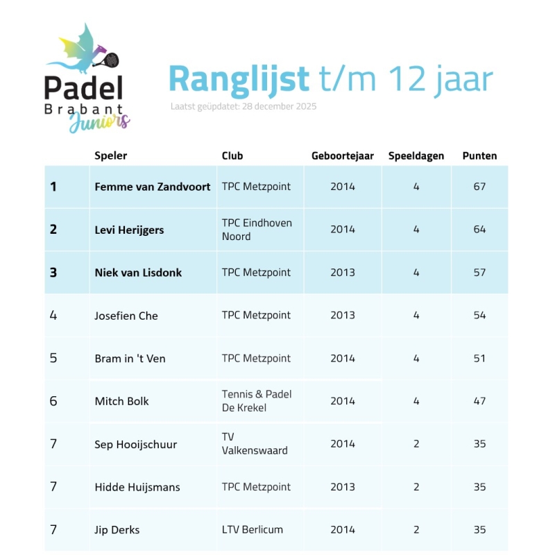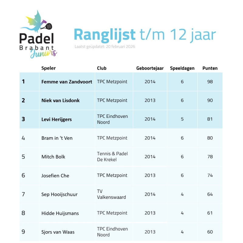 Ranglijst t/m 12