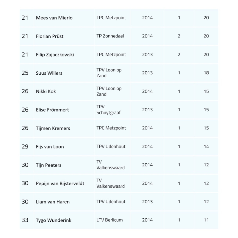Ranglijst 2025/2026